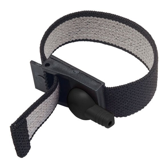 - Feito de fibras sintéticas com propriedades eletrocondutoras. Possui ajustadores deslizantes de plástico.